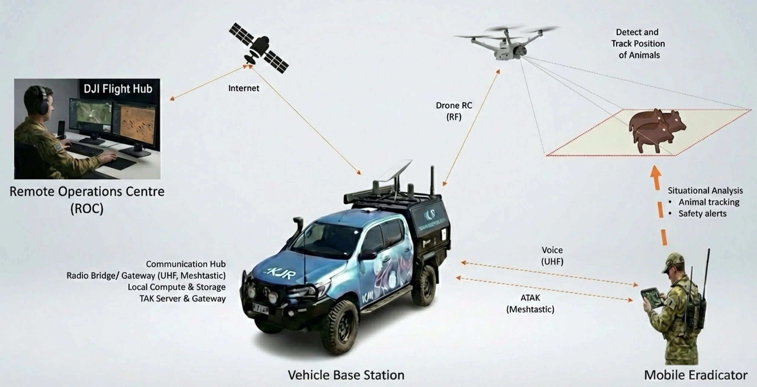 Kushai integrates drones, cameras, edge compute, and AI into resilient sensing networks—turning raw imagery into trusted alerts, reports, and decisions anywhere, anytime.