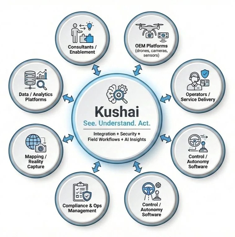Kushai collaborates with operators, OEMs and specialist partners to deliver end-to-end outcomes. We provide the integration layer, intelligence workflows and assurance needed to make programs scalable and dependable.